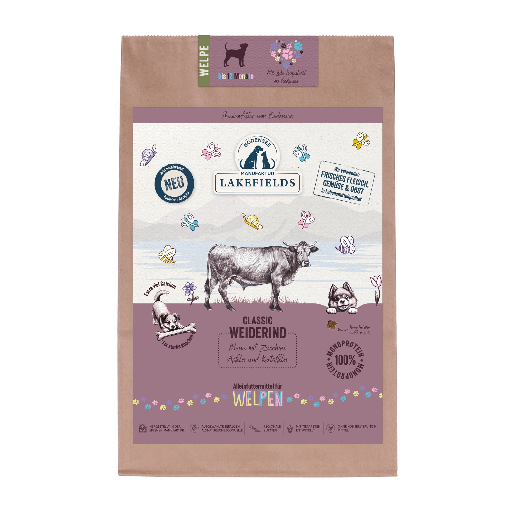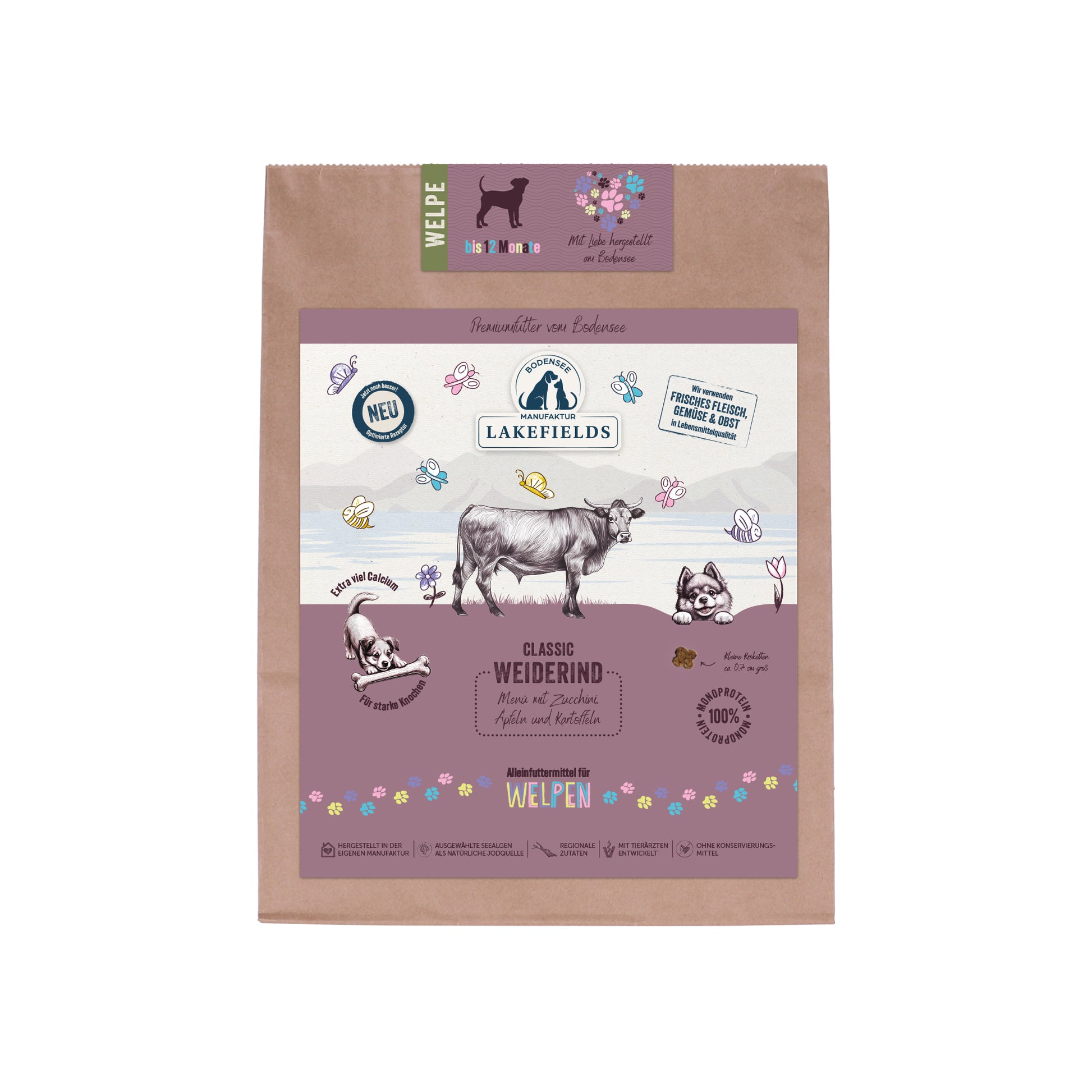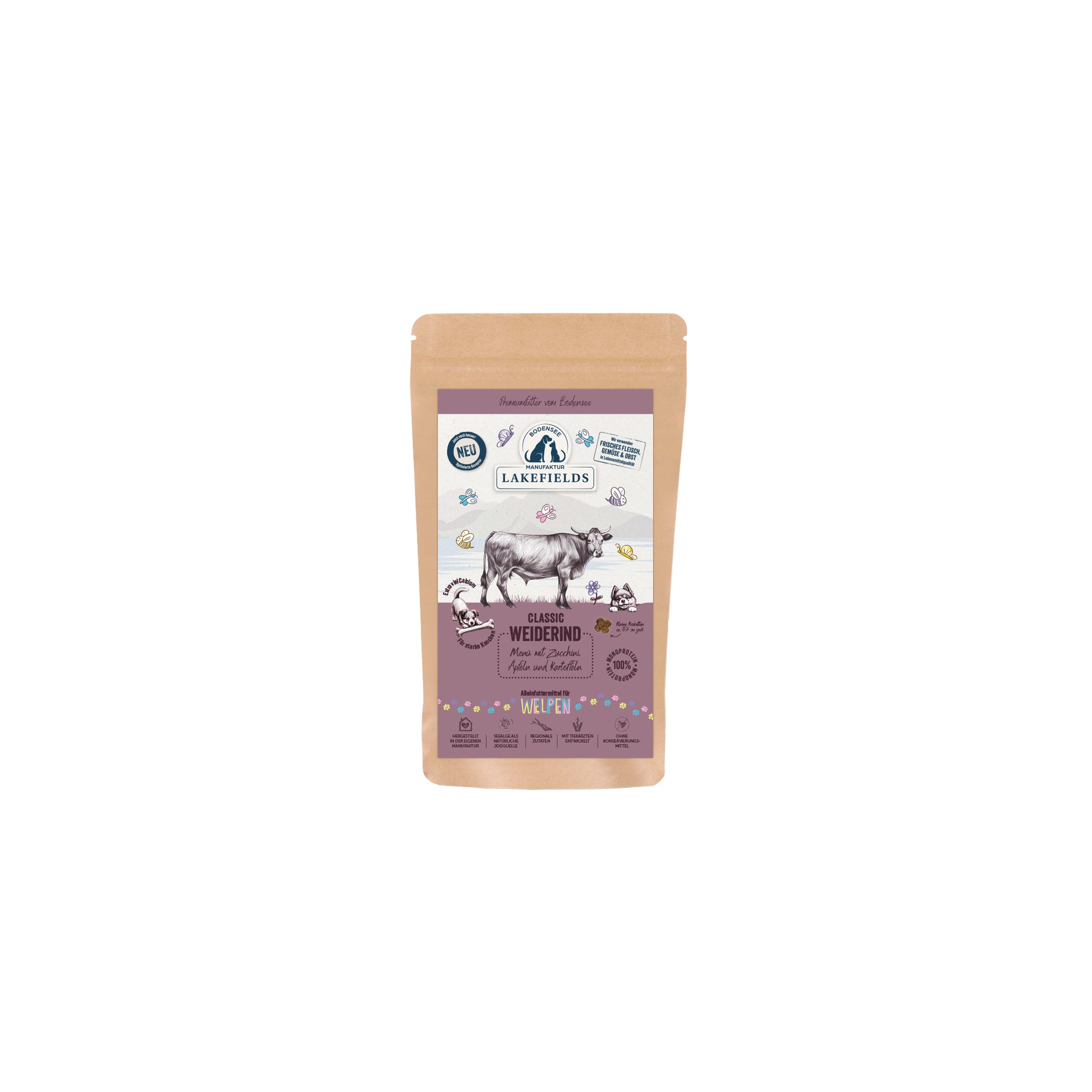 Trockenfutter-Menü Weiderind für Welpen mit Karotten, Äpfeln und Kartoffeln